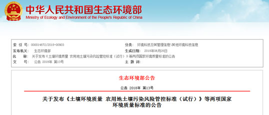 關(guān)于發(fā)布《土壤環(huán)境質(zhì)量 農(nóng)用地土壤污染風(fēng)險(xiǎn)管控標(biāo)準(zhǔn)(試行)》等兩項(xiàng)國(guó)家環(huán)境質(zhì)量標(biāo)準(zhǔn)的公告