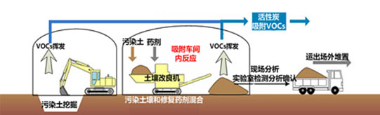 常溫解吸修復(fù)技術(shù),其原理是利用土壤中有機(jī)污染物易揮發(fā)的特點,常溫下通過土壤解析機(jī)械設(shè)備(如翻拋機(jī)、土壤改良機(jī)和篩分機(jī)等)對污染土壤進(jìn)行強(qiáng)制擾動,必要時向污染土壤中均勻混入常溫解吸用劑,增加土壤的孔隙度,使吸附于污染土壤顆粒內(nèi)的揮發(fā)性有機(jī)物解吸和揮發(fā),并最終通過密閉車間配備的通風(fēng)管路及尾氣處理系統(tǒng)得以收集去除;該技術(shù)的兩個關(guān)鍵步驟為污染物解析過程和尾氣收集處理過程。